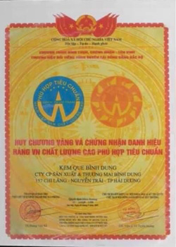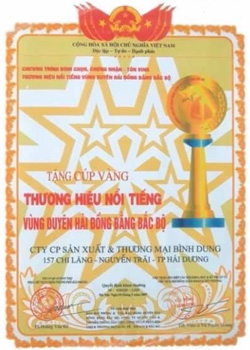 - Năm 2007 - cúp vàng thương hiệu nổi tiếng vùng duyên hải đồng bằng BẮC BỘ